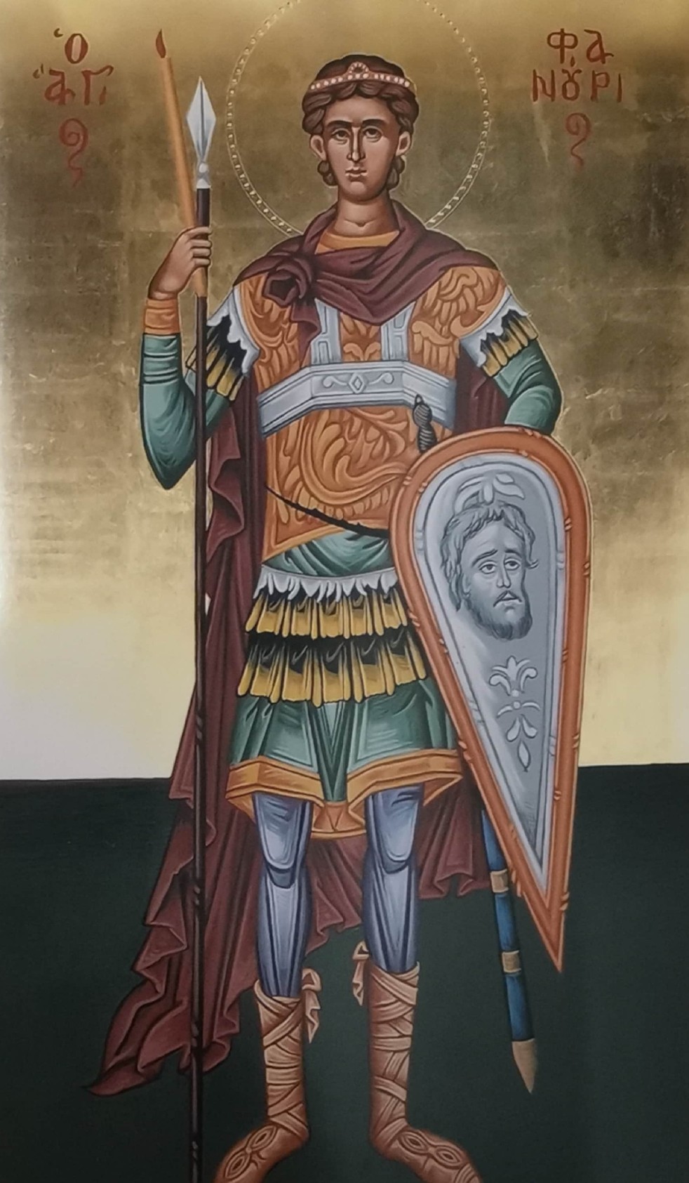 Βυζαντινή εικόνα του Αγίου Φανουρίου, του θαυματουργού Αγίου που τιμάται ιδιαίτερα για τη βοήθειά του στην εύρεση χαμένων αντικειμένων και στην αντιμετώπιση δυσκολιών της καθημερινής ζωής. Η μορφή του αποδίδεται με τη χαρακτηριστική στρατιωτική ενδυμασία και το σύμβολο του φωτός, σύμφωνα με την ορθόδοξη αγιογραφική παράδοση, εκφράζοντας πίστη, ελπίδα και θεία καθοδήγηση. Ιδανική για εικονοστάσι, προσωπική προσευχή ή ως ξεχωριστό πνευματικό δώρο.